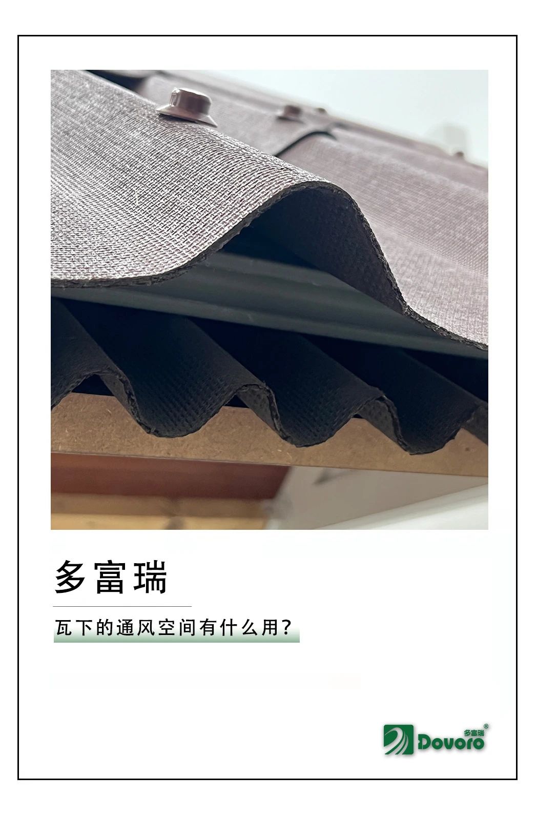 瀝青材質(zhì)防水效果非常出色,有效的搭接進一步保證防水。采用波浪形造型有效帶走瓦下熱量和潮氣,隔熱和通風(fēng)除濕效果極佳。