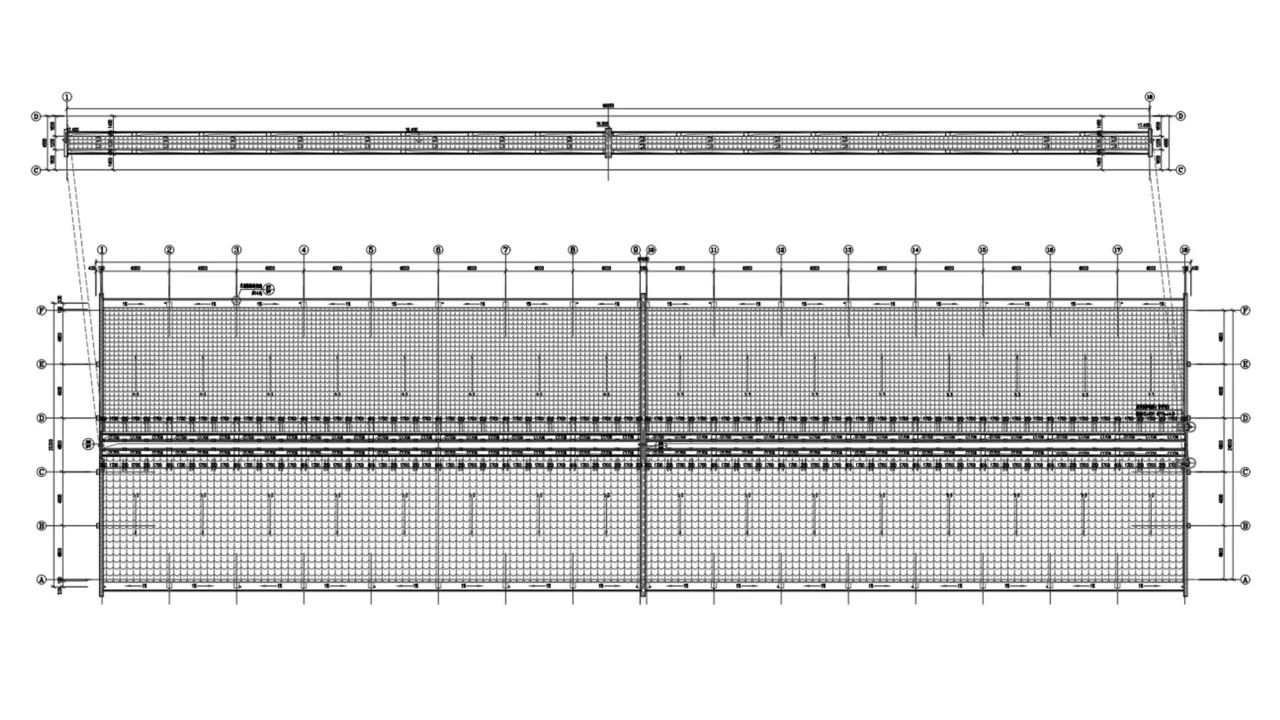糧庫(kù)單體建筑俯視圖,采用多富瑞波形瀝青瓦施工