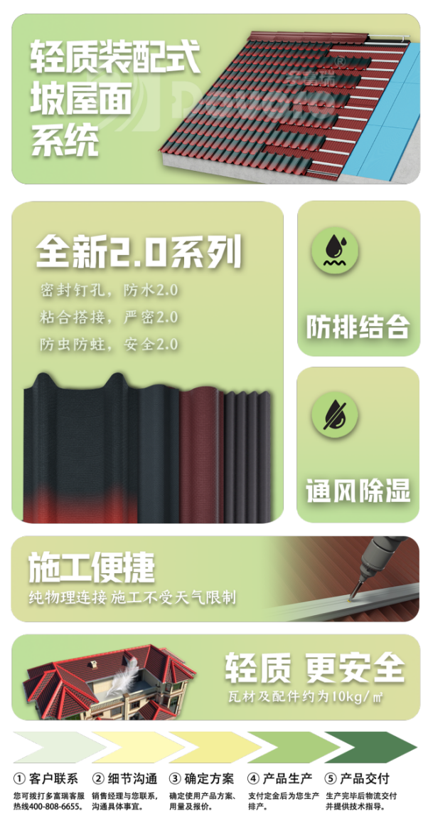 多富瑞賦予波形瀝青瓦與防水板獨特的波形,幻景、幻彩、防水板均有不同的波形設(shè)計。波形比平直的造型花費更多的材料與工序,能給一個屋面帶來什么?