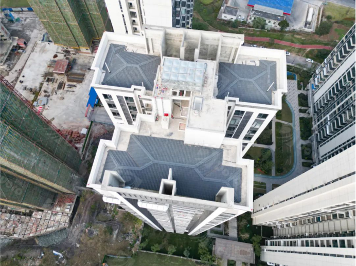 四川自貢跨貿港在多富瑞“幻影”型波形瀝青瓦的輔助下,無論是前期施工方面的便捷性,還是在建筑的交付運營階段,屋面的防水性能以及安全特性,都達到新的層次,獲得施工方和業主的高度認可。