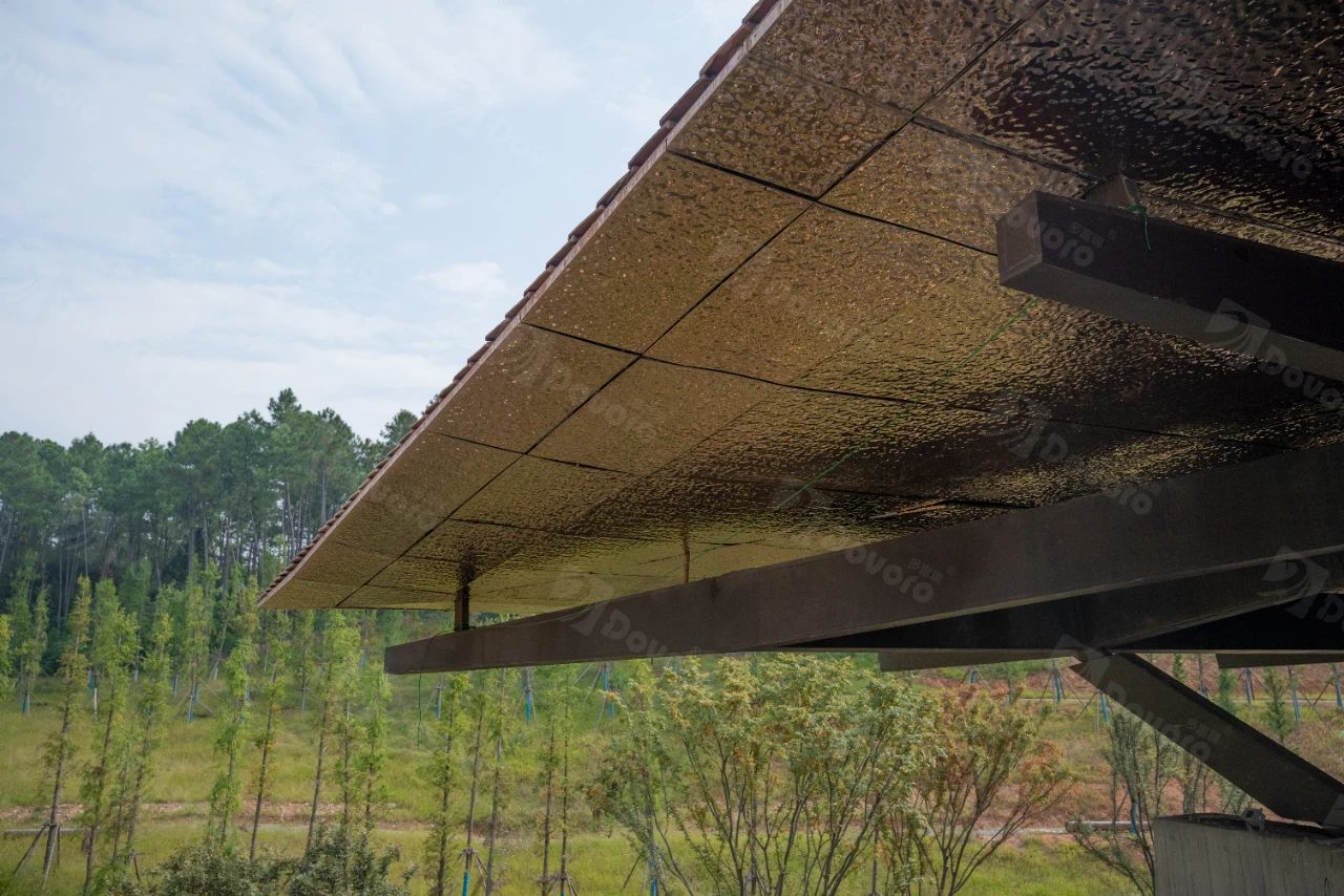 景德鎮(zhèn)藝術職業(yè)大學新校區(qū)坐落于景德鎮(zhèn)珠山區(qū),新區(qū)占地1400余畝,建筑面積約90萬平米,是一所依山傍水、綠樹成蔭的花園式高校。本項目使用波形瀝青防水板施工,搭配陶瓦,集輕質、防水、透氣、隔熱、靜音、施工便捷等優(yōu)點為一身。