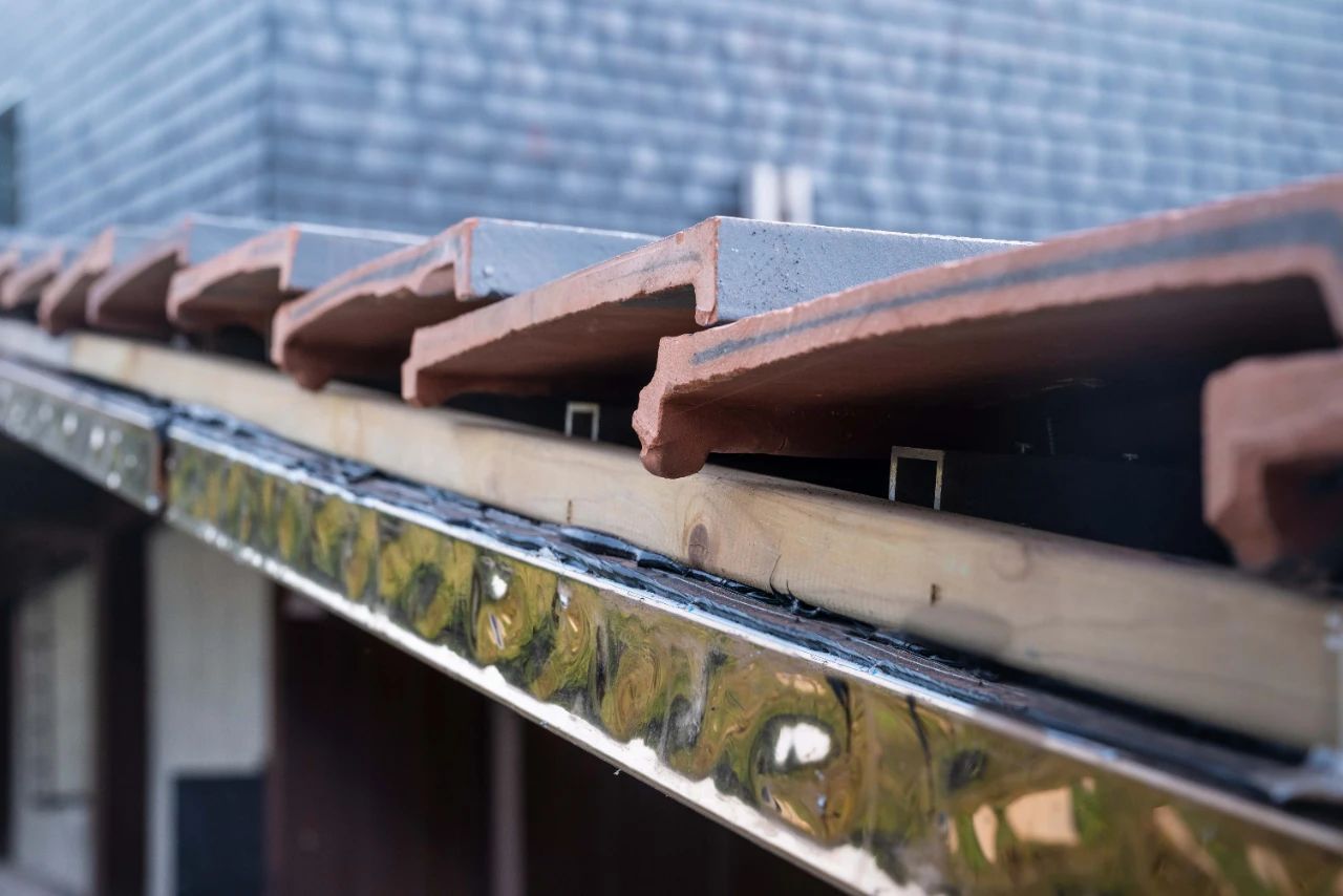 作為江南地區(qū),景德鎮(zhèn)每年雨季雨水充沛。為了對抗充沛的雨水,該項目使用波形瀝青防水板作為屋面的防水墊層,與陶瓦相組合,一起組成施工快捷、通風防水的輕質坡屋面系統(tǒng)。