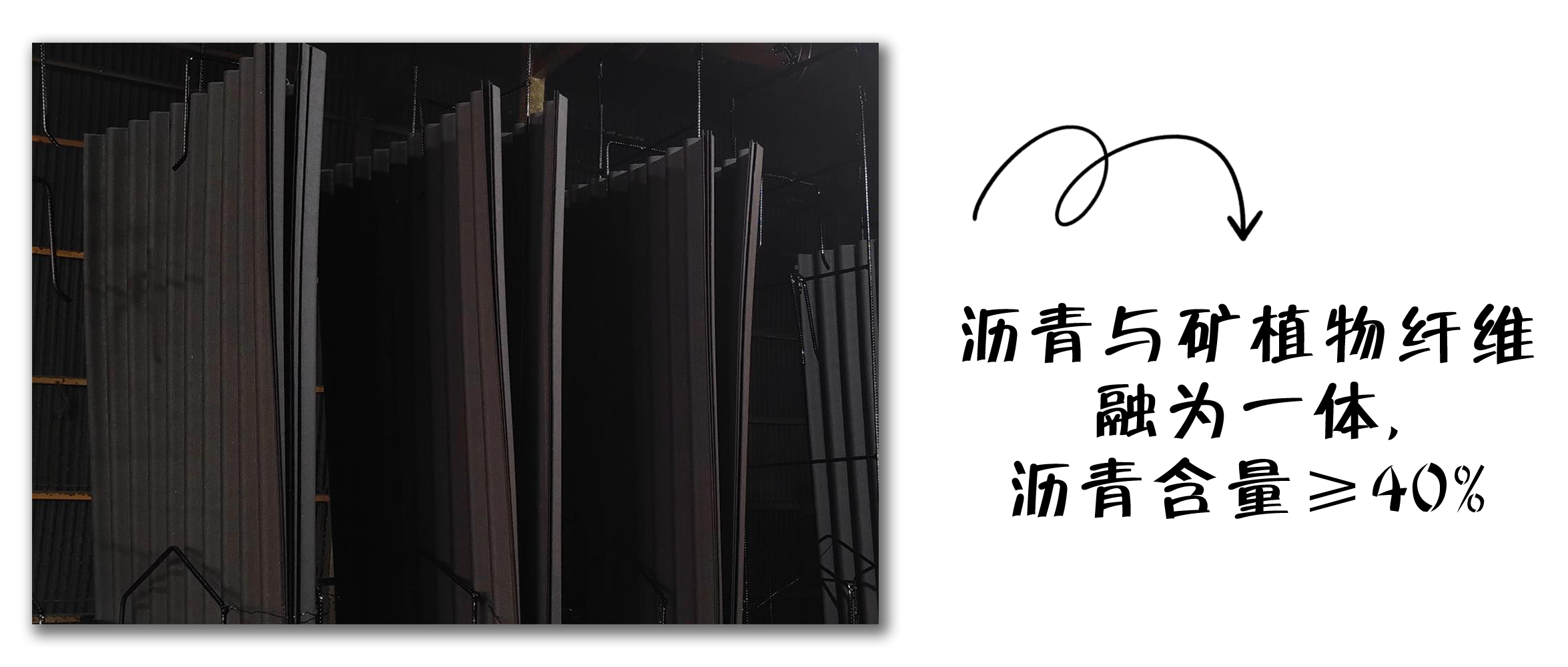 波形瀝青瓦使用礦植物纖維和瀝青作為主要的原材料,瀝青通過高溫浸漬后填滿礦植物纖維中的孔隙,與礦植物纖維融為一體。加上其他原材料的配比添加,瀝青可以穩(wěn)固地發(fā)揮其防水效果,不會因風吹日曬或切割安裝導致瀝青脫落。