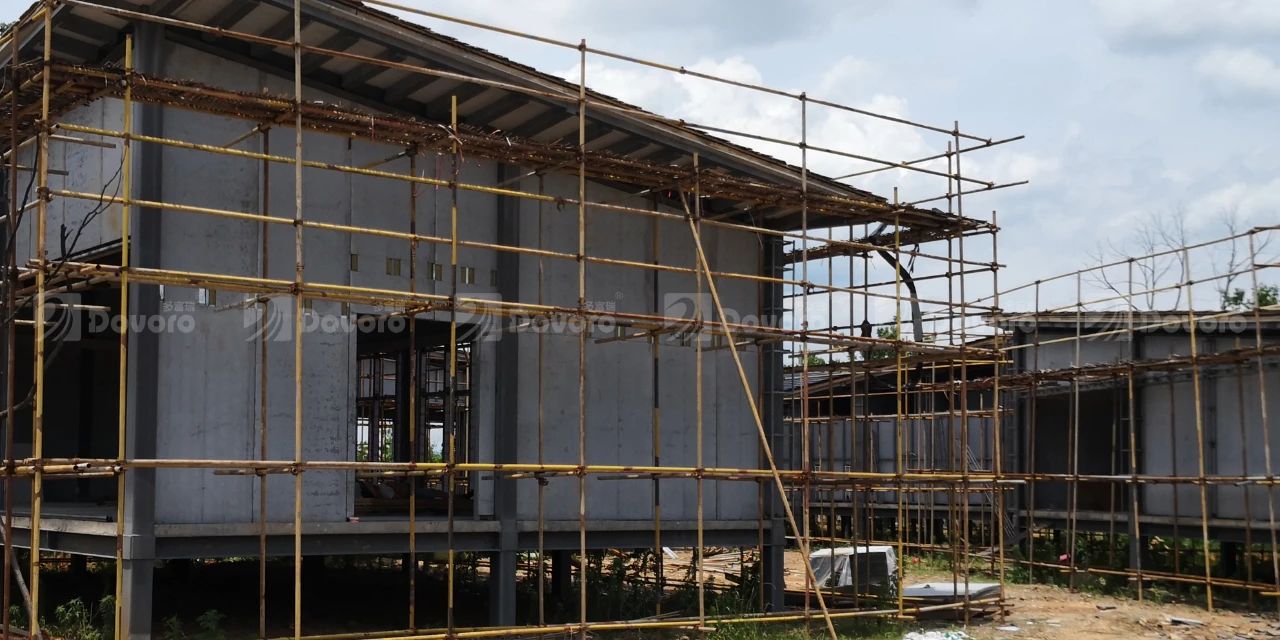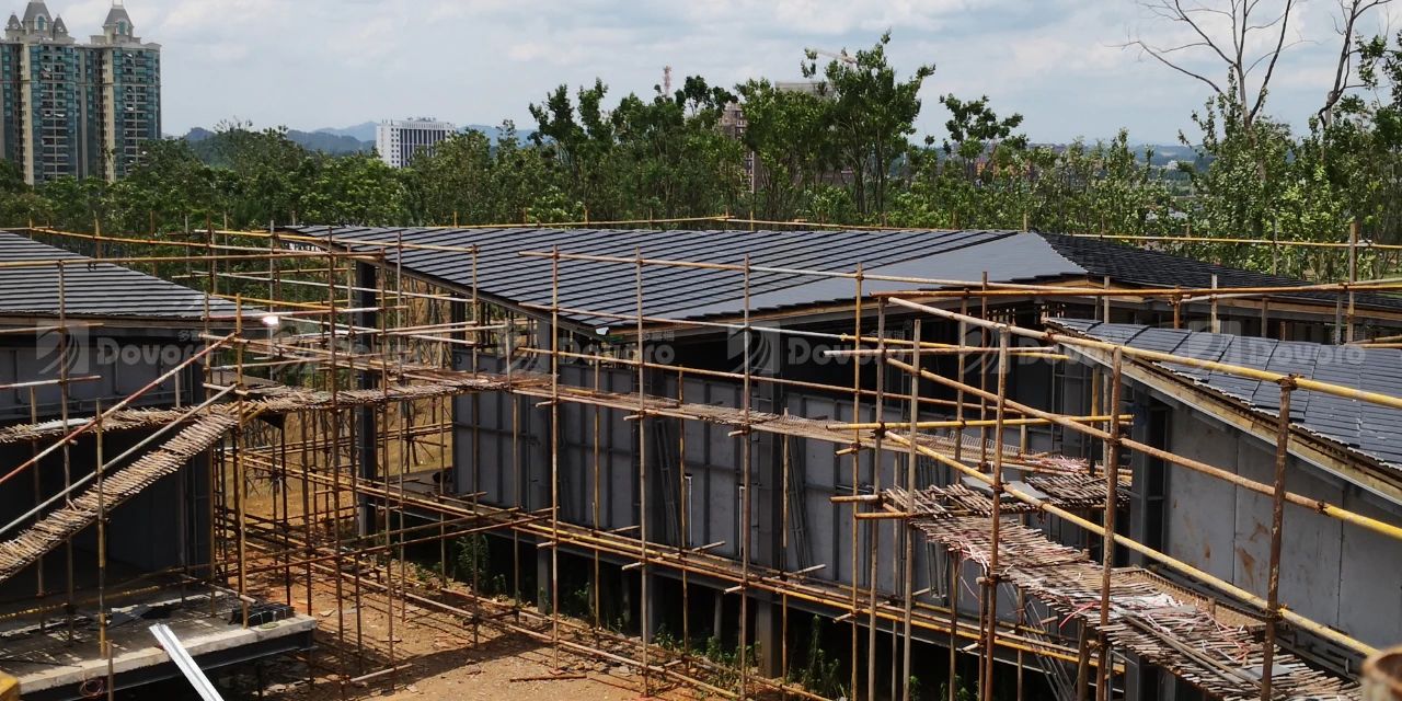 本項目中建筑采用鋼結構裝配式設計,波形瀝青防水板可以在各類屋面基層上快速安裝。