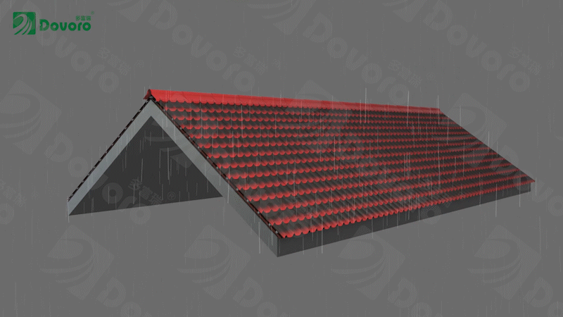 得益于多富瑞輕質坡屋面系統的立體構造,在上層的波形瀝青瓦與下層的波形瀝青防水板之間,有著每平方米200cm³的通風通道。