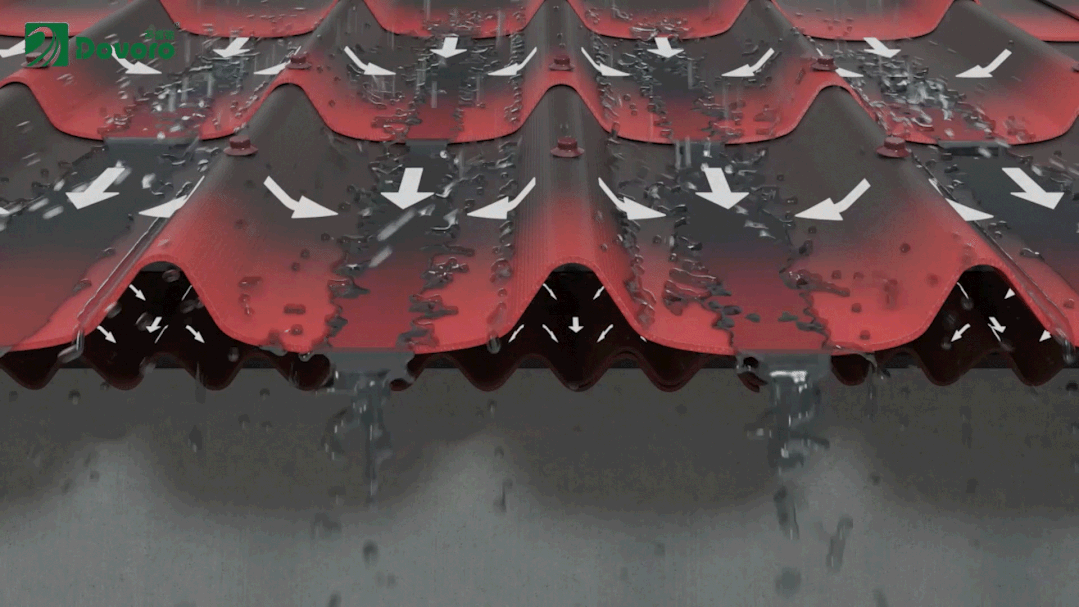 A:多富瑞輕質坡屋面系統采用了防排結合的設計,除了在材料里加入瀝青以達到優異的防水性能,還使用波紋設計以達到更有效的排水效果,在材料和結構上相輔相成。