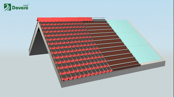 A:多富瑞輕質裝配式坡屋面系統是把保溫層、波形瀝青防水板、掛瓦條和屋面瓦用純物理的連接方式快速組合在一起,構成輕質、安全、節能的屋面系統。該屋面系統具有施工質量高、安裝速度快、不受氣候環境影響等特點,是未來極具發展潛力的新型屋面系統。