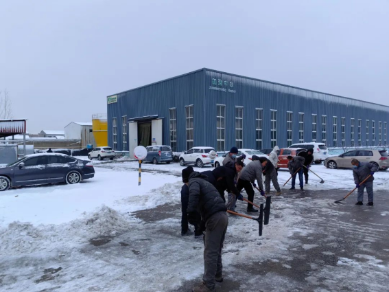 多富瑞山東生產(chǎn)基地也被銀裝素裹,大雪雖美,但也給出行帶來了一些不便。為保障廠區(qū)內(nèi)道路通暢,秉承“誠篤至信,臻于至善”的價(jià)值觀,在公司領(lǐng)導(dǎo)的帶領(lǐng)下,各部門員工積極投入到了清雪的工作之中。在歷經(jīng)數(shù)小時(shí)的鏟雪工作后,開辟出一條安全通行的道路。
